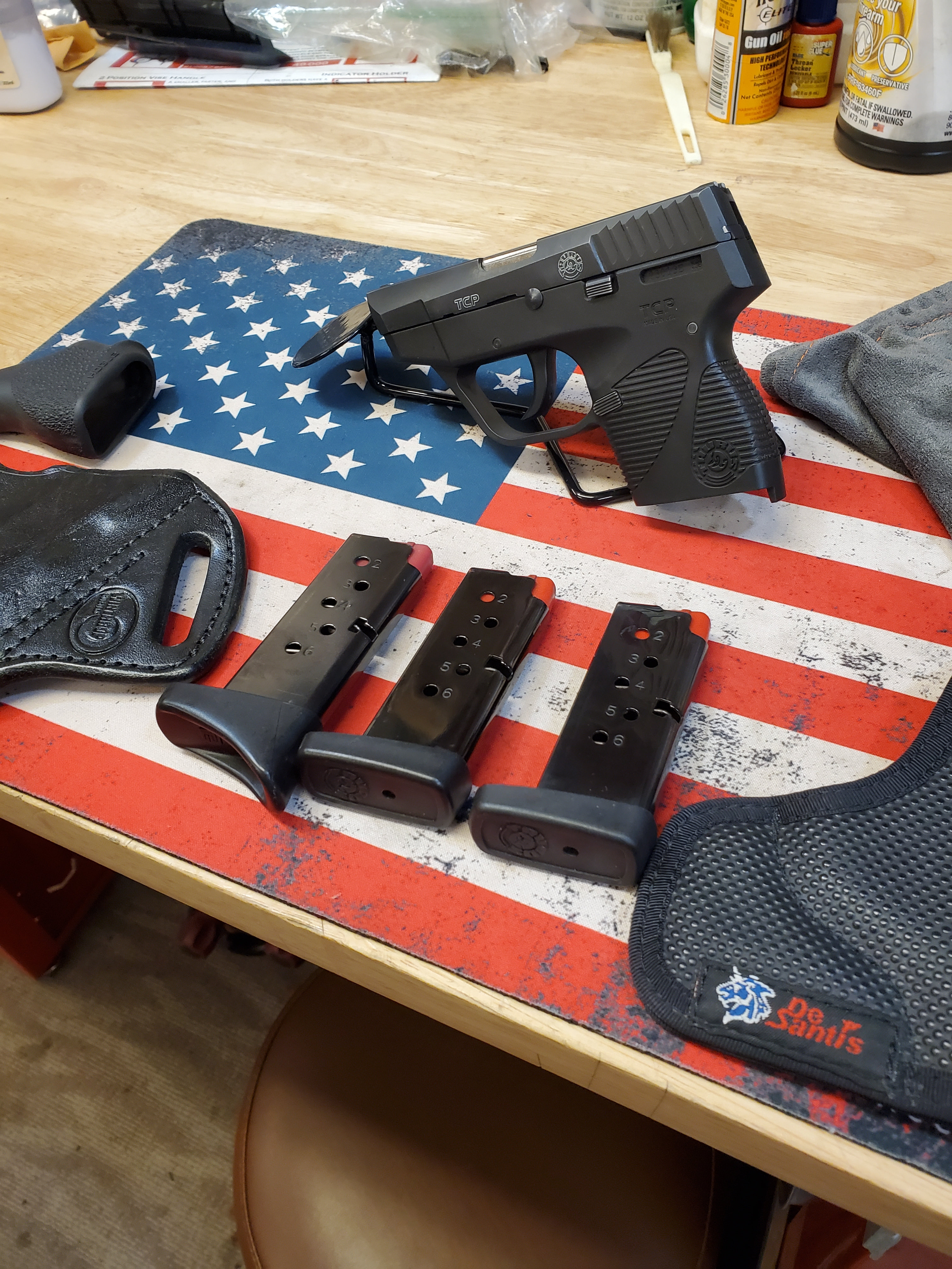 TAURUS TCP 738 w TWO HOLSTERS, GRIP, AND TWO SPARE MAGS .380